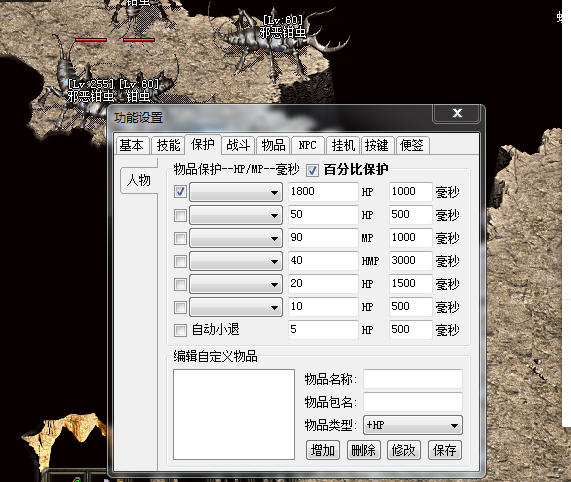 F12内挂-保护 最下面自己添加自己需要的药水即可!